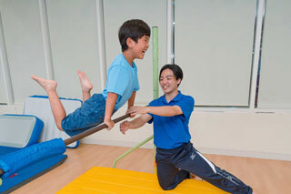 鉄棒、マット、跳び箱を中心に指導を行います。